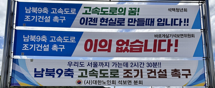 지난 10월 15일, 공설운동장에서 주민 1만여 명이 모여 남북9축 고속도로 건설을 촉구하는 ‘범군민 총결의대회’를 개최하는 등 하나 된 의지로 현장의 절박한 목소리를 중앙정부 및 정치권에 전달하기 위해 최선을 다하고 있다.