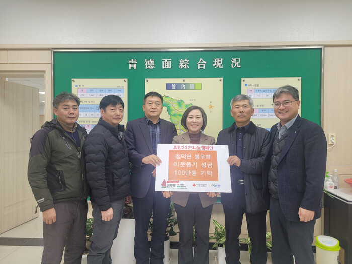 이은숙 청덕면장은 “오늘 전달해주신 성금은 관내 어려웃 이웃을 위해 사용하겠다”며 감사한 마음을 전했다.