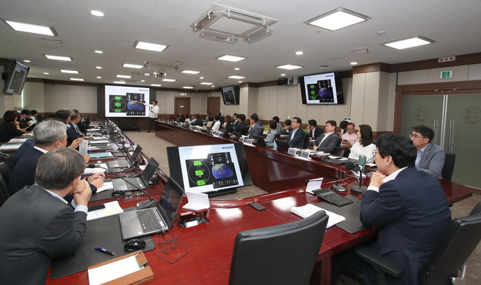 | ▲ 정명근 화성특례시장과 화성특례시 공직자들이 URAN AI에 대한 특강을 듣고 있다 /사진제공=화성특례시 |