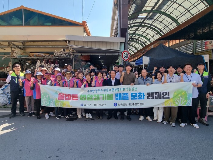 공단 임직원 15여명과 한국생활개선합천군연합회 회원 15여명은 합천군 관내 생활폐기물 배 출실태와 자원 순환의 중요성에 대한 사전 교육을 받고, 합천군 왕후 시장을 중심으로 걸으며 군민 및 시장 이용객들에게 올바른 생활폐기물 배출 방법 포스터 및 종량제 봉투 사용 촉진 홍 보를 위한 부채를 배부하였다.