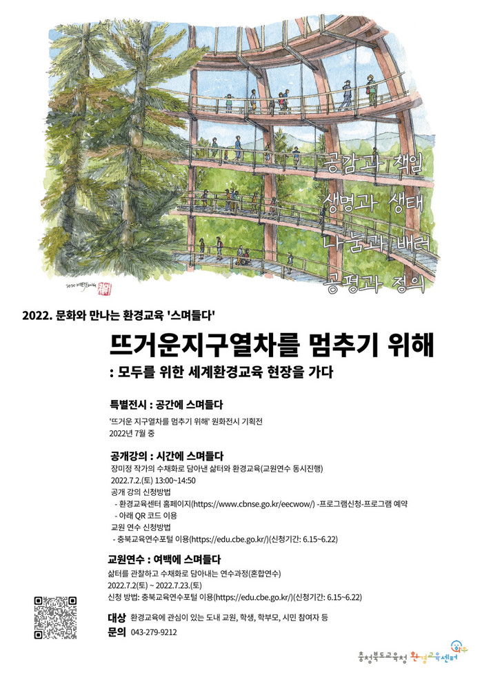 [청주=엄기동 기자]충청북도교육청 환경교육센터와우가 7월 환경기념일인 인구의 날을 맞이해 2022학년도 문화로 만나는 환경교육 ‘스며들다’ 프로그램을 운영한다.