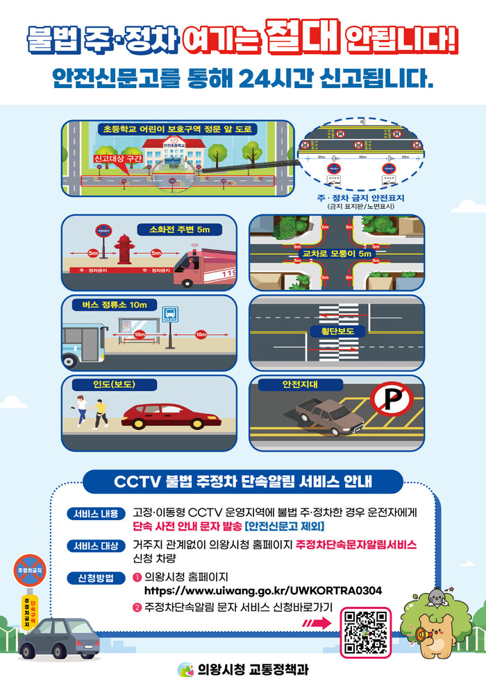 | ▲ 절대 주정차 금지구역’과 ‘불법 주정차 단속 알림 서비스’안내 포스터 /자료제공=의왕시 |