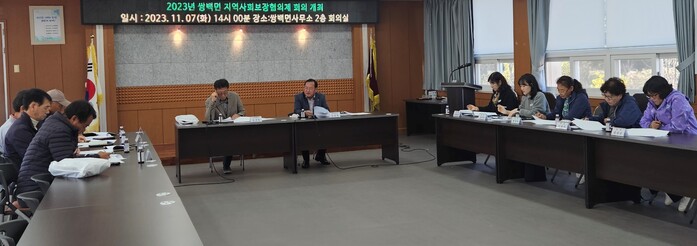 김상욱 쌍백면장은 “지역 주민의 욕구를 잘 아는 위원님들의 역할이 매우 크다”며 “협의체가 중심이 되어 지역의 크고 작은 복지 발전에 많은 관심과 참여를 부탁드리며, 쌍백면에 위기가구가 발생하지 않도록 행정에서도 최선의 노력을 다하겠다”고 전했다.