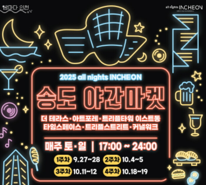 인천관광공사에 따르면 송도 야간마켓은 2023년부터 매년 개최한 인천 야간관광 대표 프로그램으로 지역의 야간 체류 및 소비 증대를 통한 지역경제 활성화를 위해 기획됐다.
