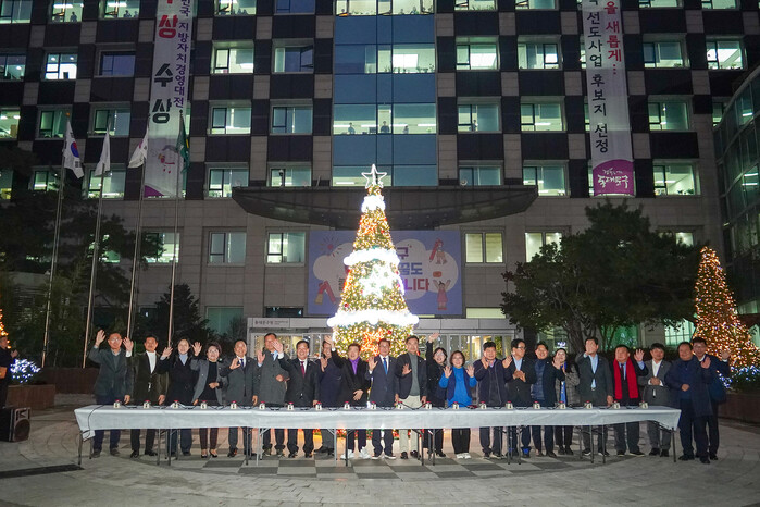이태인 동대문구의회 의장을 비롯한 구의원들과 이필형 동대문구청장은 한마음으로 트리의 불을 밝히며, 주민들에게 ‘희망의 빛’을 전하기 위해 함께 노력할 것을 다짐했다.