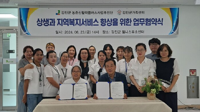 [강진=정찬남 기자] 전남 강진군 농촌신활력플러스사업추진단(농어촌개발과)은 지난 23일, 강진군가족센터와 상생과 지역복지서비스 향상을 위한 업무협약(MOU)을 체결했다.