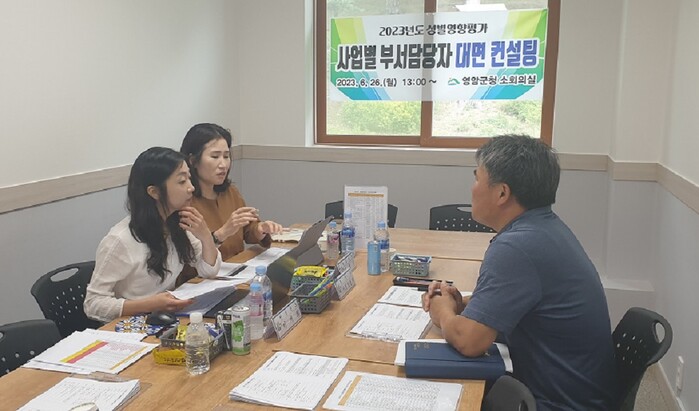 [영암=정찬남 기자] 전남 영암군(군수 우승희)은 지난 26일 군청에서 18개부서 26개 사업의 ‘2023년 성별영향평가 대면 컨설팅’을 전남여성가족재단 전문 컨설턴트 2명과 함께 진행했다.