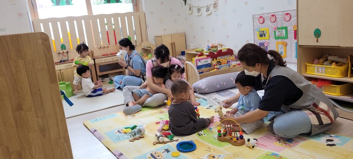 | ▲ 신길파크자이 솔숲어린이집에서 보육교직원들이 아이들을 돌보고 있다.(사진제공=영등포구청) |