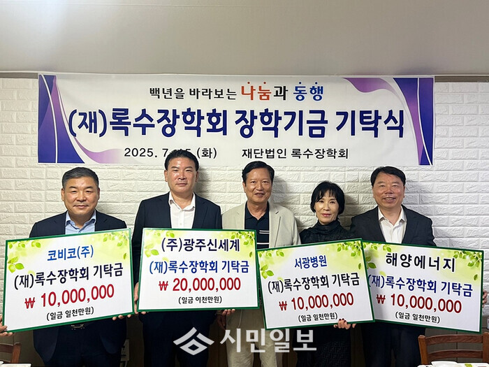 양진석 록수장학회 이사장은 “지역사회의 따뜻한 마음이 소방공무원 자녀들의 미래를 밝히는 데 큰 힘이 되고 있다”며 “특히 이번 기탁에 함께해주신 ㈜광주신세계, 코비코㈜, 서광병원, ㈜해양에너지에 깊이 감사드린다. 이같은 따뜻한 나눔이 사회에 긍정적인 변화를 이끌어낼 것으로 기대한다”고 말했다.