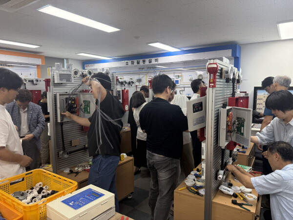 소방 시설 공사 시 기초적인 배선 작업 등 결선 작업의 이론적 기초 이해를 위해 올해 도입된 실습 전문교육으로 실무교육 대상자 중 소방시설 시공기술 습득 희망자를 대상으로 실시됐다.
