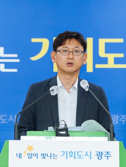 | ▲ 김용승 광주광역시 인공지능산업국장이 28일 오전 시청 브리핑실에서 광주첨단국가산업단지 에너지 자급자족 인프라 구축사업에 대해 브리핑하고 있다. / 광주광역시 제공 |