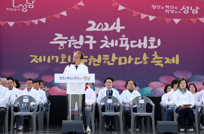 한편, 중원구 체육대회 및 중원한마당축제 통합추진위원회가 주최하고 구가 후원한 이날 행사는 11개 동별 대표 선수단 74명이 참여한 체육대회와 각 동을 대표하는 11팀의 구민 노래자랑 등이 열리는 한마당 축제로 구성되었다.