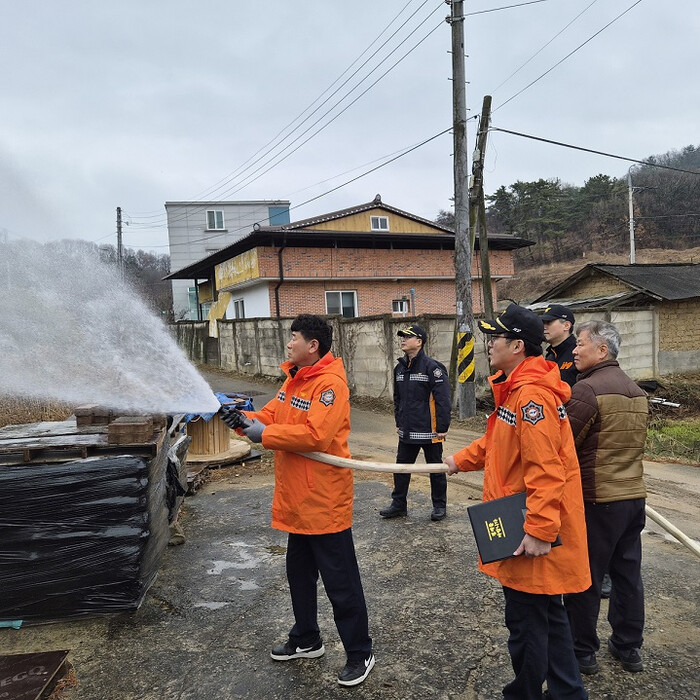 비상소화장치는 마을에 설치된 초기 화재 대응 장비로 소방차가 현장에 도착하기 전 화재 확산을 억제하는데 활용된다. 특히 마을주민과 의용소방대원을 전담 인력으로 지정해 예비 살수 작업과 병행하며 긴급 상황에서 즉각 대응할 수 있도록 실습 중심으로 진행했다.