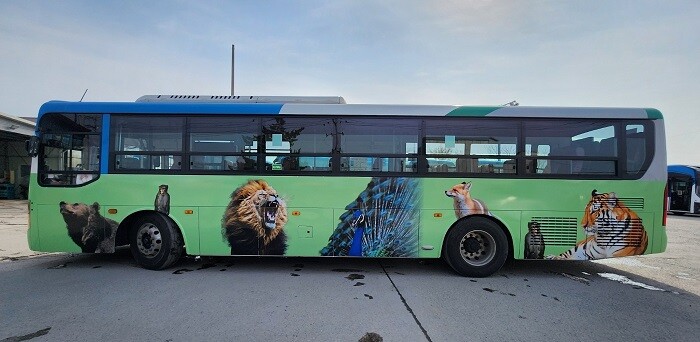 앞면은 호랑이, 뒷면은 곰, 옆면은 사자와 공작새, 원숭이 등 다양한 동물들로 버스의 사면을 가득 채웠다.