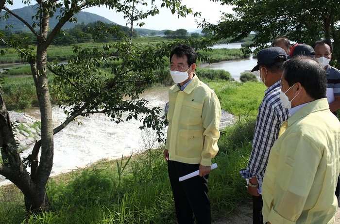 강진원 군수는 해마다 집중호우로 피해를 입는 군동면 석교들에 있는 배수개선사업 현장을 찾아 배수시설, 비상발전기 가동 등 침수피해 예방을 위한 제반 시설 현황을 점검했다.