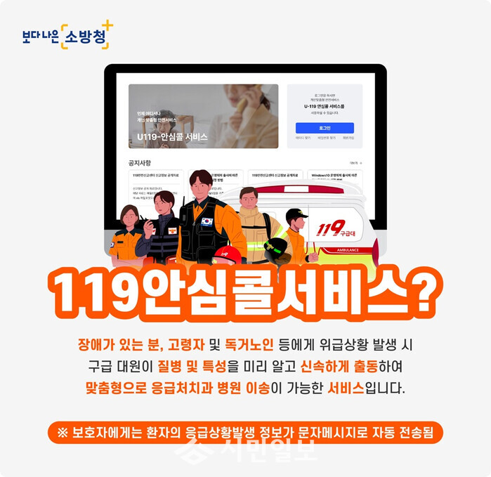119안심콜 서비스는 국민이 사전에 자신의 전화번호와 질병 정보, 보호자 연락처, 주소 등을 등록해두면 119신고 시 해당 정보가 자동으로 전송되어 보다 빠르고 맞춤형 대응이 가능하도록 지원하는 제도이다. 특히 고령자, 독거노인, 만성질환자, 장애인 등 재난.응급 상황에 취약한 국민에게 큰 도움이 된다.