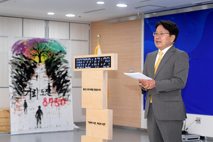 [광주=정찬남 기자] 민선 8기 강기정 광주광역시장의 ‘광주의 시계’가 8760시간이 흘렀다. 이제 2만6280시간 남았다. 강 시장은 취임 1년 기자회견에서 “쉼 없이 달려온 지난 1년처럼 앞으로 3년의 시간도, 눈에 보이고 손에 잡히는 시민 일상의 변화, 함께 성장하는 광주·전남의 변화, 대한민국의 새로운 변화를 이끌어 나가겠다.”고 다짐했다.