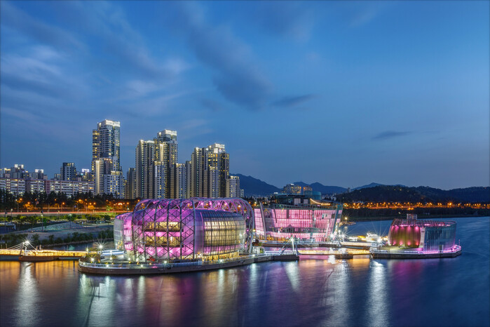 | ▲ 서울 반포대교 남단 한강 위에 떠 있는 복합 문화 공간 세빛섬 야경 |