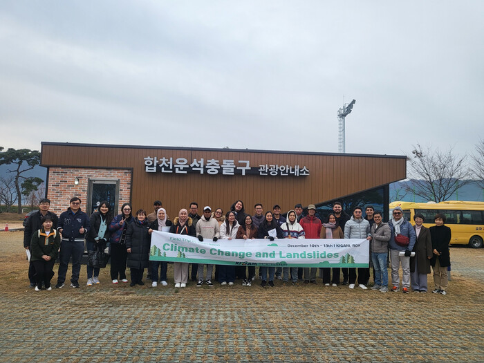 이번 답사는 한국지질자원연구원 국제지질자원인재개발센터가 주관한 「기후변화와 산사태」 교육 프로그램의 일환으로 진행되었다. 교육은 12월 9일부터 13일까지 5일간 운영되었으며, 이 중 12일~13일에는 합천운석충돌구 답사와 합천영상테마파크, 해인사 방문으로 마무리되었다.