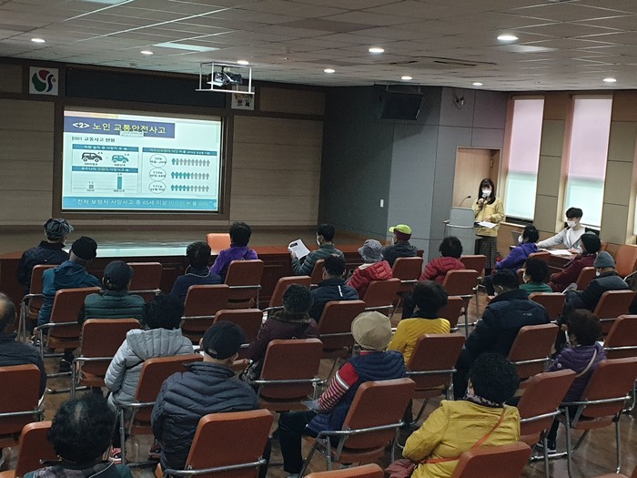 이번 교육은 동면 노인일자리 참여자 88명을 대상으로 노인일자리 참여 중 발생할 수 있는 낙상사고 및 교통안전사고 예방을 위한 안전교육을 진행하였다.