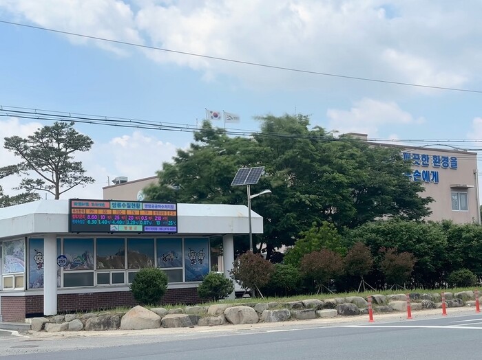 [영암=정찬남 기자] 전남 영암군(군수 우승희)이 공공하수처리시설에서 방류하는 수질 정보를 전광판에 실시간 공개하고 있다.