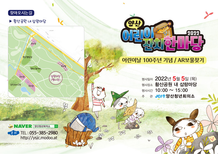 이번 행사는 (사)양산청년회의소(대표 도현진)에서 주관하며, 5월 5일 어린이날 오전 10시에서 오후 3시까지 황산공원 내 황산숲 일원 삽량마당에서 증강현실(AR) 기술을 활용한 가상보물찾기 게임으로 진행한다.