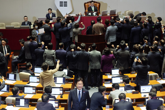 특히 “무정부, 무사법, 입법유일 독재가 꿈이냐”고 이 대표를 겨냥하면서 “‘민주적 절차’라는 허울을 쓰고 ‘실질적 민주주의’를 파괴하는 것이 ‘탄핵 중독자’ 이재명의 반민주적 실체다”라고 직격했다.