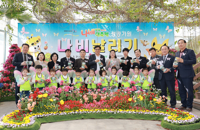참석자들은 제27회 나비대축제의 성공적인 개최를 염원하며 함평군농업기술센터에서 직접 키운 호랑나비와 배추흰나비 등 2,025마리를 하늘로 날려 보냈다.