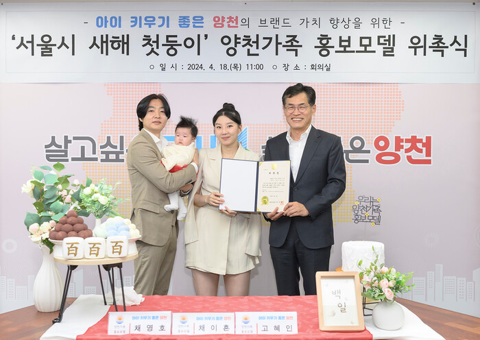 이번 위촉식은 최근 백일을 맞은 첫둥이 가족을 축하하기 위한 백일상 콘셉트로 진행됐으며, 이를 위해 지역내 신정종합사회복지관의 백일상 무료 대여서비스를 활용했다. 이날 위촉장을 전달한 이기재 양천구청장은 건강한 성장을 기원하는 덕담과 함께 홍보모델로서 양육친화 문화 확산에 중요한 역할을 해줄 것을 당부했다.