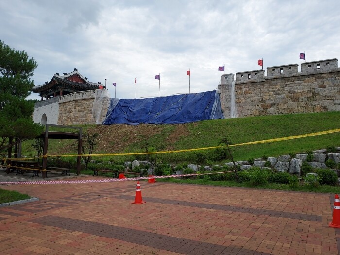 [성주=박병상 기자] 경북 성주군 읍성 역사테마공원이 준공 4년만에 최근 내린 폭우로 인하여 붕괴되는 사고가 일어나 재난으로 인한 붕괴인가 아니면 부실공사로 인한 붕괴인가에 초점이 맞쳐지고 있다.