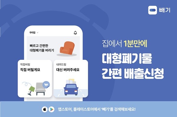 ‘빼기’는 전국 70만 명의 회원이 검증한 모바일 서비스 앱으로, 대형폐기물 배출과 관련한 다양하고 편리한 기능을 제공한다. 서비스 라인은 직접버림, 내려드림, 중고매입 등으로 구성된다.