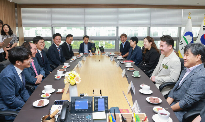서울 도봉구가 최근 한국청소년활동진흥원과 '청소년의 건강한 성장 지원을 위한 업무협약'을 체결했다. 세부 내용으로는 지역사회 청소년 참여활동 기회 확대를 위한 협력 등이며 상호협력이 필요한 사항 등에 적극 협력하기로 했다. 사진은 이날 협약식에서 오언석 구청장(오른쪽 두 번째)과 관계자들이 '청소년활동 분야 협력 강화' 업무협력 방안에 대한 이야기를 나누고 있는 모습. (사진=도봉구청 제공)