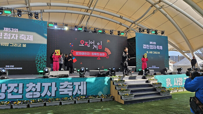 | ▲ 청자축제장 메인 무대에서 오징어 게임을 진행하고 있는 모습 / 강진군 제공 |