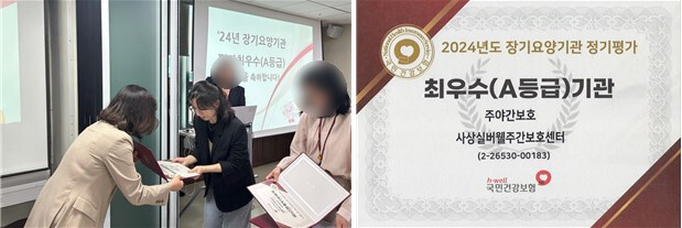 [시민일보 = 이대우 기자] 부산 사상구 주간보호센터 실버웰(대표 김성윤)은 보건복지부와 국민건강보험공단이 주관한 ‘2024년 장기요양기관 정기평가’에서 최우수 등급(A등급)을 획득했다.