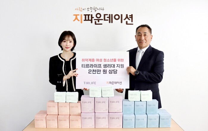 프리미엄 라이프 스타일 브랜드 티르라이프(TIRLIFE)가 10월 20일 초경의 날을 맞이하여 지난 5월 세계 월경의 날 기부에 이어 지파운데이션에 약 2천만 원 상당, 총 2,700개의 생리대를 기부했다고 밝혔다.