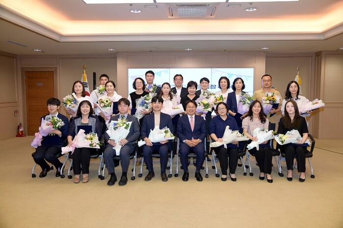 [광주=정찬남 기자] 광주광역시(시장 강기정)는 30일 오전 시청 비즈니스룸에서 강기정 시장이 참석한 가운데 새내기 공무직 12개 직종 24명에 대한 임용장 수여식을 개최했다.