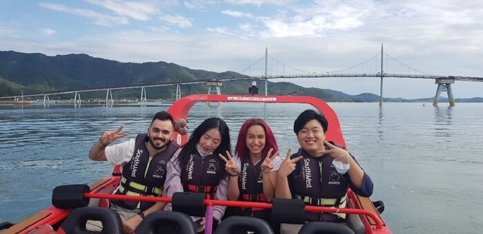 | ▲ 강진을 찾은 여행객들이 강진만에서 보트 체험을 하고 있다. / 자료사진=강진군 제공 |