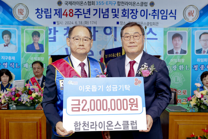 또한 취임회장 및 합천라이온스클럽은 합천군에 이웃돕기성금 200만원을 기탁하며 훈훈함을 더했다.