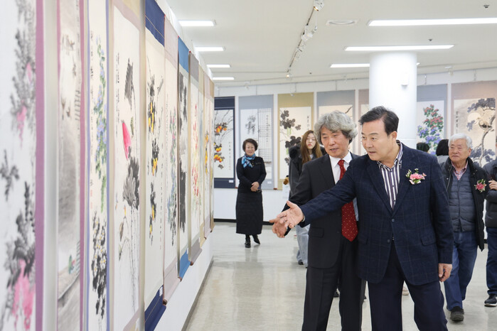 [의왕=송윤근 기자] 경기 김성제 의왕시장이 11월 18일, 평생학습관 2층 갤러리에서 열린 ‘제28회 의왕화도회 작품전’ 개막식에 참석해 회원들의 작품을 관람하고 올 한 해 활동 성과를 격려했다.