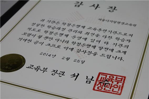 | ▲ (사진=서울디지털평생교육원 2014년 교육부 장관상 수상) |