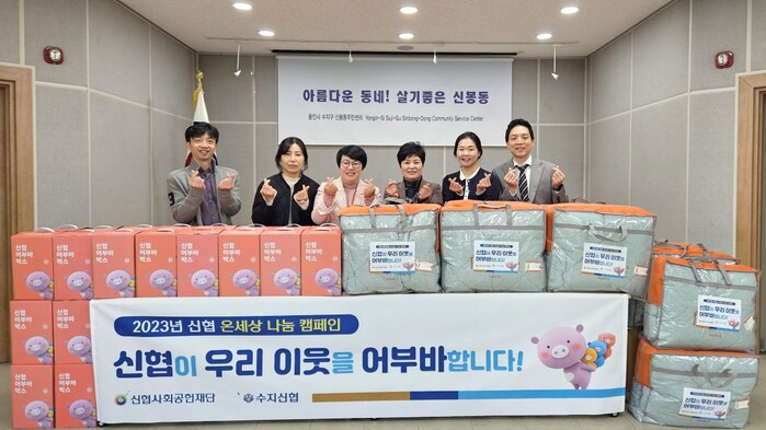 수지신협 이기찬 이사장은 “이번 캠페인을 통해 추운 겨울을 보낼 우리 지역 내 소외계층 이웃들에게 따뜻한 온기가 전달되길 바란다”며 “어려운 이웃들이 희망을 키워나갈 수 있도록 지역사회 나눔을 지속 실천하겠다.”고 전했다.