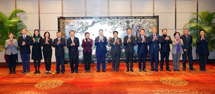 | ▲ 강기정 광주광역시장(오른 쪽부터 8번)이 지난 6일 오후 중국 광저우시 백조호텔에서 쑨쯔양 광저우시장과 양 도시간 협력강화 공동협약서에 서명한 뒤 임택 동구청장, 김이강 서구청장, 조석호·박미정·서용규 시의원 등 양 도시 관계자들과 기념촬영을 하고 있다./광주광역시 제공 |
