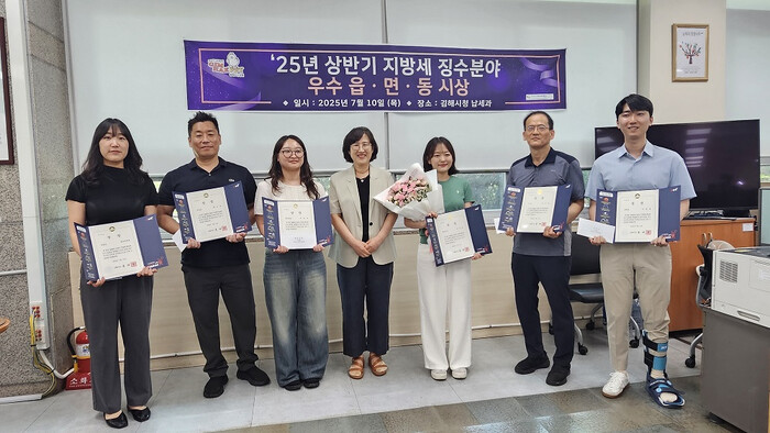 이번 평가는 2025년 4월부터 6월까지 진행된 「2025년 상반기 지방세 체납액 특별징수기간 운영」 실적을 바탕으로 인구 3만 명 이상·미만 2개 그룹으로 나누어 진행되었으며, 지방세 체납액 줄이기·번호판 영치실적 등 8개 항목에 대한 종합적인 평가 결과로 내외동과 주촌면이 최우수상을, 북부동과 동상동이 우수상을, 그리고 진영읍과 칠산서부동이 장려상을 각각 수상하였다.