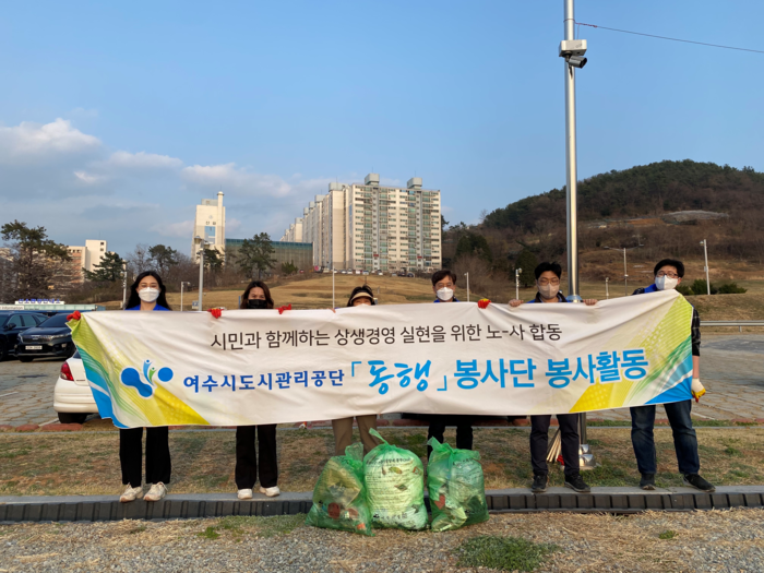 여수시도시관리공단(이사장 김태규, 이하 공단) 직원으로 이뤄진 「동행」 봉사단 60여 명은 지난 3월 23일부터 28일까지 친환경 사회공헌 활동의 하나로 웅천 해변공원 일대 등 여수시 6곳에서 환경정화 봉사활동을 실시했다고 밝혔다.