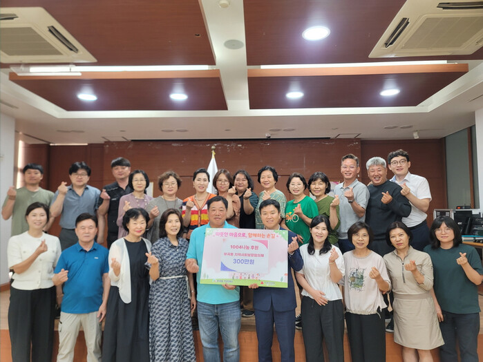 [의왕=송윤근 기자] 경기 의왕시 부곡동지역사회보장협의체(민간위원장 전영배)는 8월 14일, 어려운 이웃을 돕기 위한 경기사회복지공동모금회 ‘1004나눔’ 후원금으로 기탁해 달라며, 위원들이 모은 회비 300만 원을 부곡동주민센터에 전달했다.
