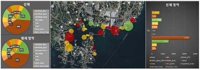 | ▲ 공간정보 기반 해양쓰레기 분석정보 가시화(예시) |