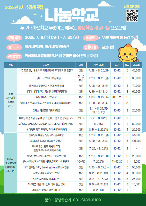 | ▲2025년 2차 나눔학교 수강생 모집 홍보물 /자료제공=화성특례시 |