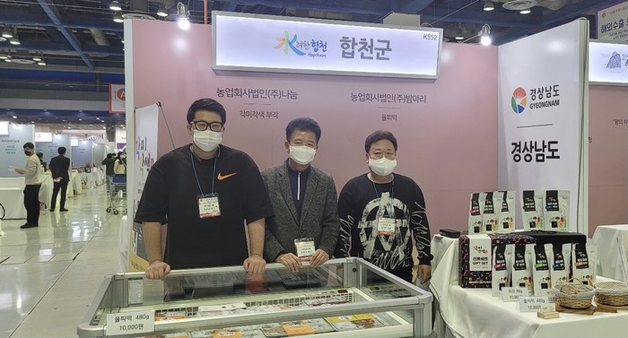 군은 합천군 강소농연합회(회장 차원덕)에서 농·특산물 홍보를 위한 부스를 운영했으며, 특히 농업회사법인(주)밤마리, 농업회사법인(주)나눔의 율피떡과 부각이 다양한 제품과 깔끔한 포장디자인으로 소비자들의 이목을 끌었다.