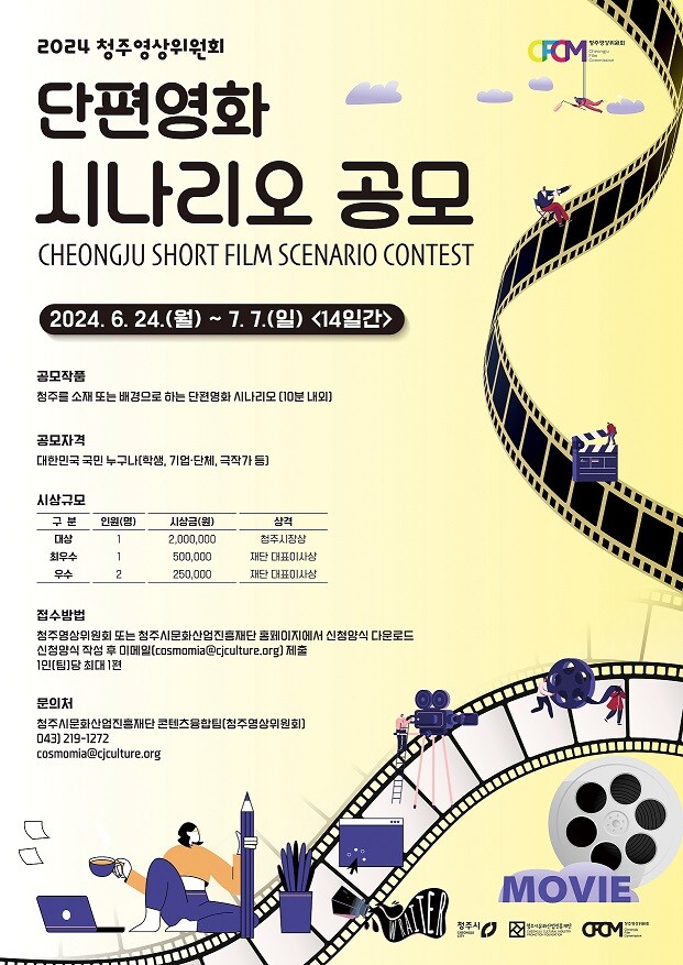 청주시문화산업진흥재단이 운영하는 청주영상위원회(위원장 변광섭, 이하 청주영상위)가 ‘2024 단편영화 시나리오 공모전’ 일정에 돌입했다.