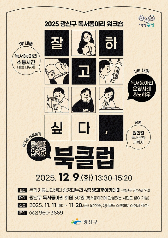 독서동아리 워크숍에 관심 있는 시민이나 독서동아리 회원은 누구나 참여할 수 있으며, 28일까지 설문 링크를 통해 신청하면 된다.